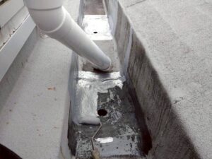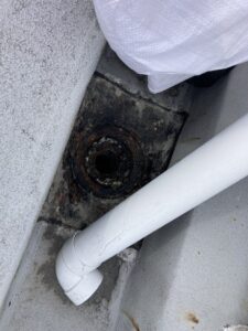 長年の経年劣化で排水口(ドレン)まわりから雨漏りの心配があったため、