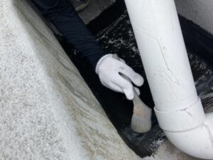 続いて、下塗りプライマーを塗布したあと、ウレタン防水材を均一に塗り重ねていきます。