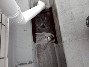 まずは、古くなった既存のドレンや劣化した防水層を丁寧に撤去しました。